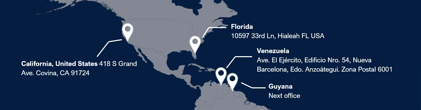 With established offices in California, Florida, and Barcelona (Venezuela), we are proud to announce our upcoming expansion with a new headquarters in Guyana.